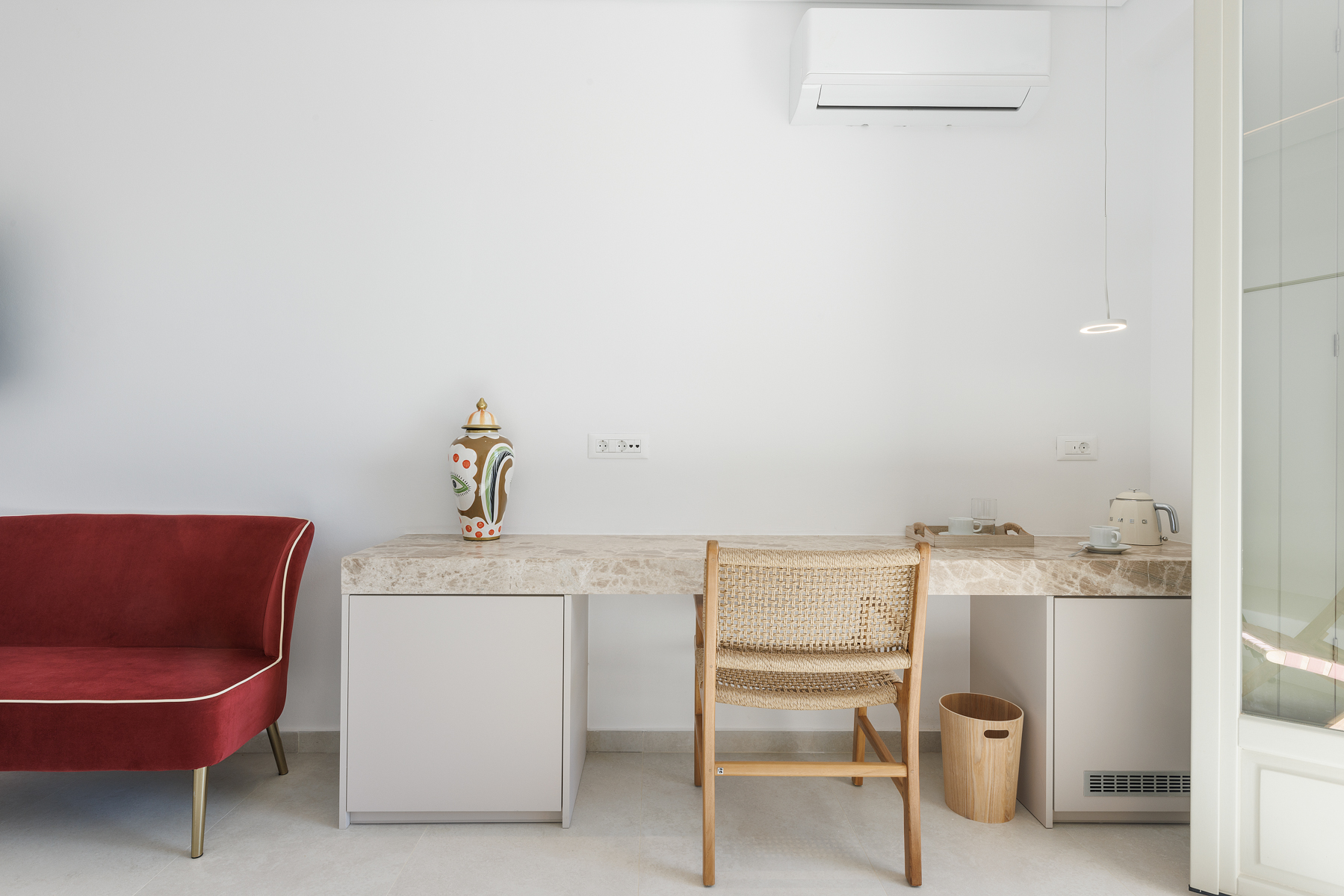 1 Superior δίκλινο δωμάτιο 28 τμ με χτιστό διπλό κρεβάτι, θέα θάλασσα A/C , ψυγειάκι, χρηματοκιβώτιο.